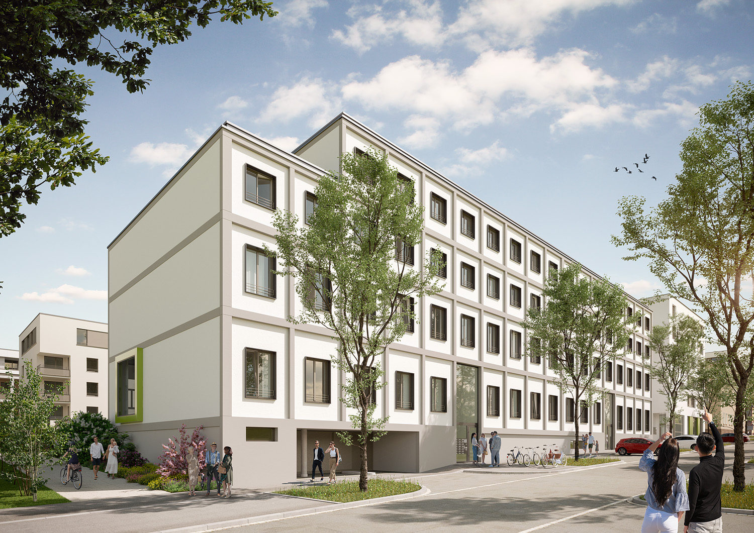 Alle dargestellten Bilder zeigen Illustrationen vom Jägerhofquartier.