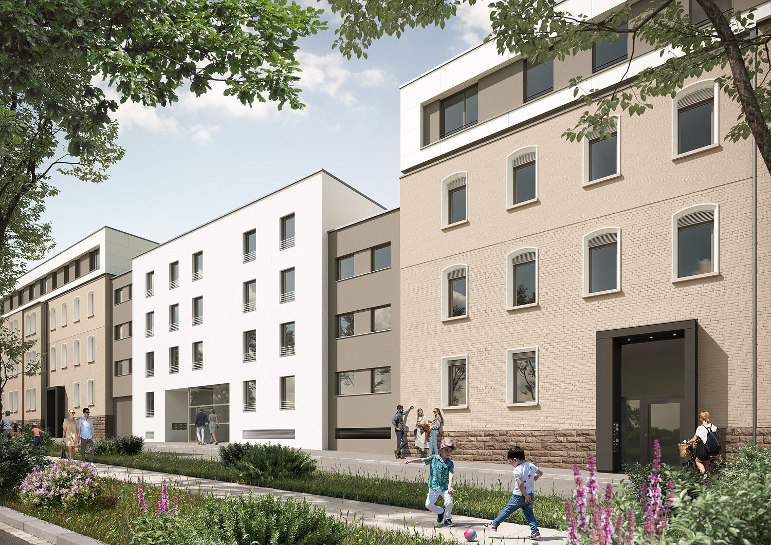 Die dargestellten Bilder zeigen Illustrationen vom Jägerhofquartier.